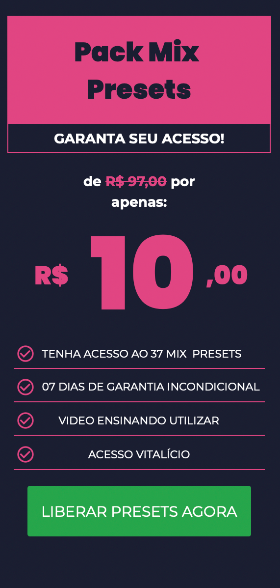 Receba o acesso aos presets em seu e-mail.